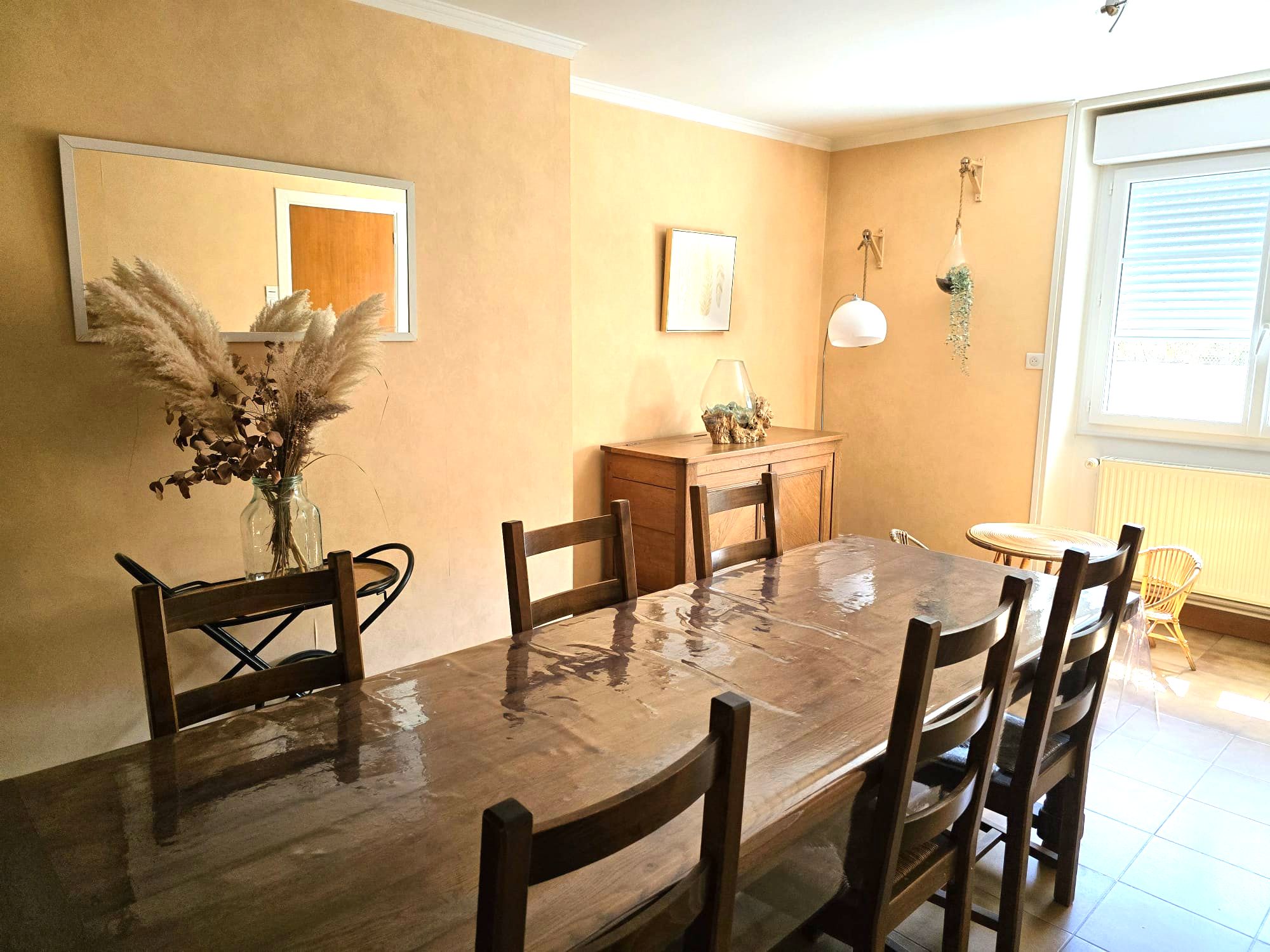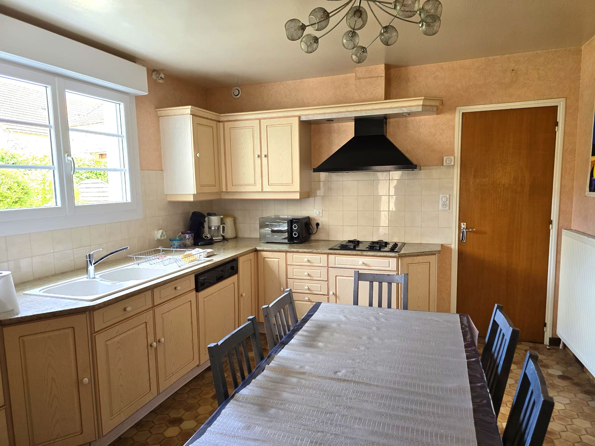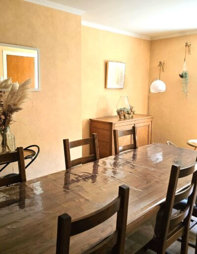 Au rez-de-chaussée : un grand salon – une salle à manger – une cuisine intégrée – une salle de bain avec douche et baignoire – une toilette – une buanderie – et un bureau.